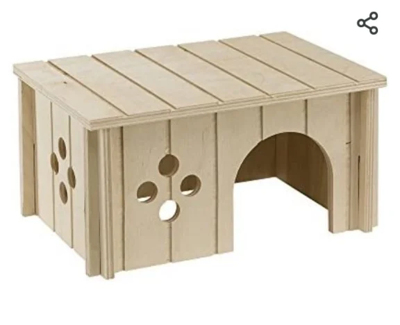 Suitable for a dwarf hamster, or for a small syrian hamster with the inside panel knocked out - watch out for protruding nails with this house though - nails are used to make it so it needs checking to make sure none are protruding. The same warning goes for nearly all rough barkwood items sold for hamsters. The other houses listed above don't use any nails, and use safe wood and petsafe glue. Available from Amazon. https://amzn.to/4e9WM7U