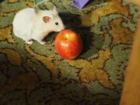 Yes I haven't updated much on him recently - every night is the same - he is king of the living room - scampers around everywhere, gets into things and occasionally has a go at pushing the room divider over. In between coming back to the coffee table area and running on his wheel or saucer. We did have a little cuddle the other night which was nice. I tried to take some photos last night but it was a bit dark and he moves fast so most of them were just a blur! But this is him just before he came out. He sat in his treat put initially, snacking, then saw me and came to the front of the cage to come out.